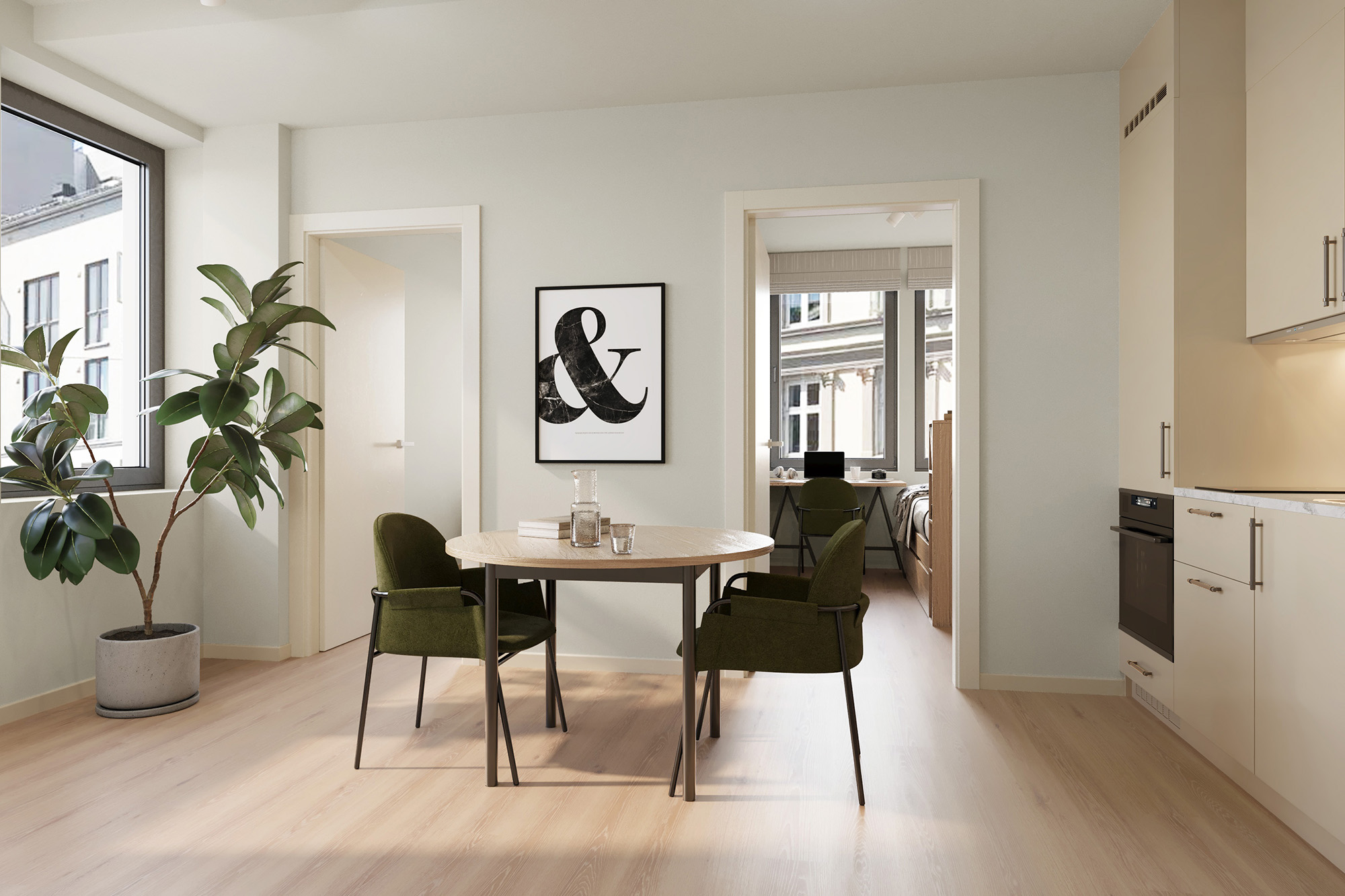 Apartment: In February 2026, Phase 2 of our newest project will be completed! Move straight into our brand new apartment with its own bedroom. Here you live comfortably with plenty of space, high standards and a modern touch. Each unit is equipped with its own bedroom (150 bed), its own kitchen and bathroom, as well as good storage facilities with wardrobes, drawers under the bed and shelves. The apartment is perfect for couples. The accommodation is located from the 2nd - 5th floor of the property.